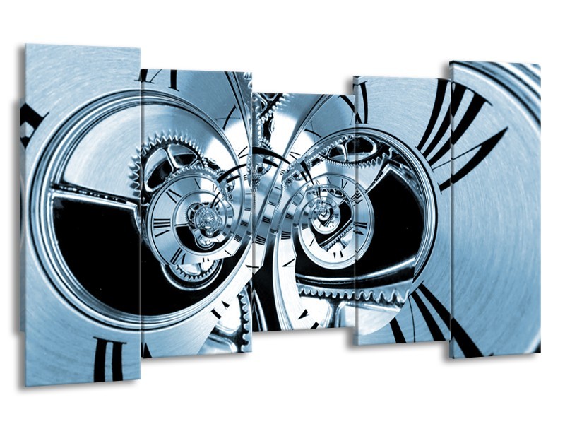 Canvas Schilderij Abstract | Blauw | 150x80cm 5Luik