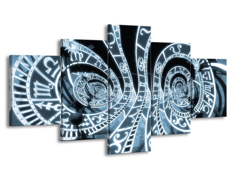 Canvas Schilderij Abstract | Blauw, Zwart | 150x80cm 5Luik