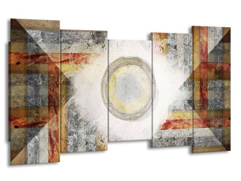 Canvas Schilderij Abstract | Grijs, Crème, Bruin | 150x80cm 5Luik