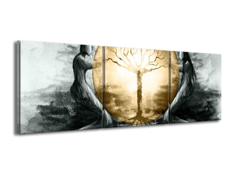 Canvas Schilderij Abstract | Grijs, Goud | 150x50cm 3Luik