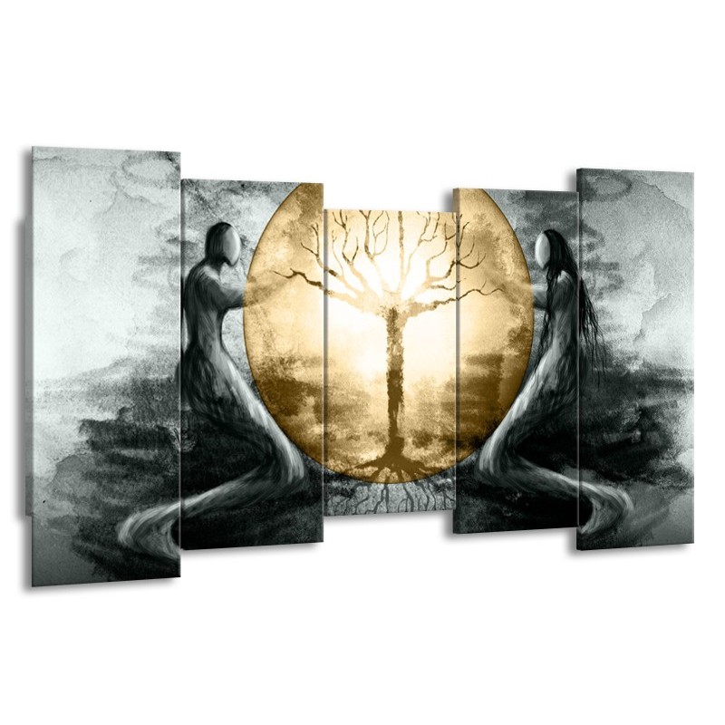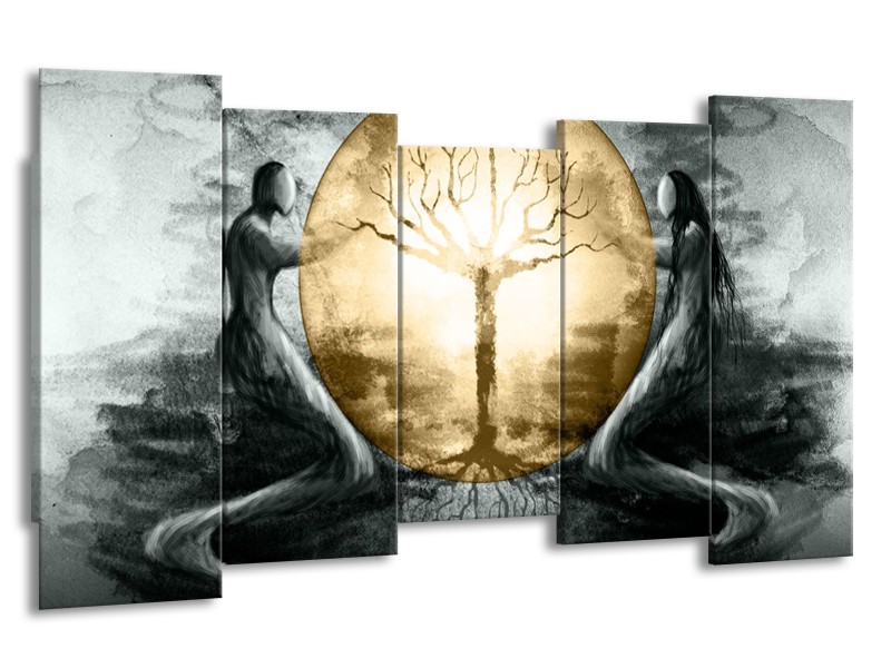 Canvas Schilderij Abstract | Grijs, Goud | 150x80cm 5Luik