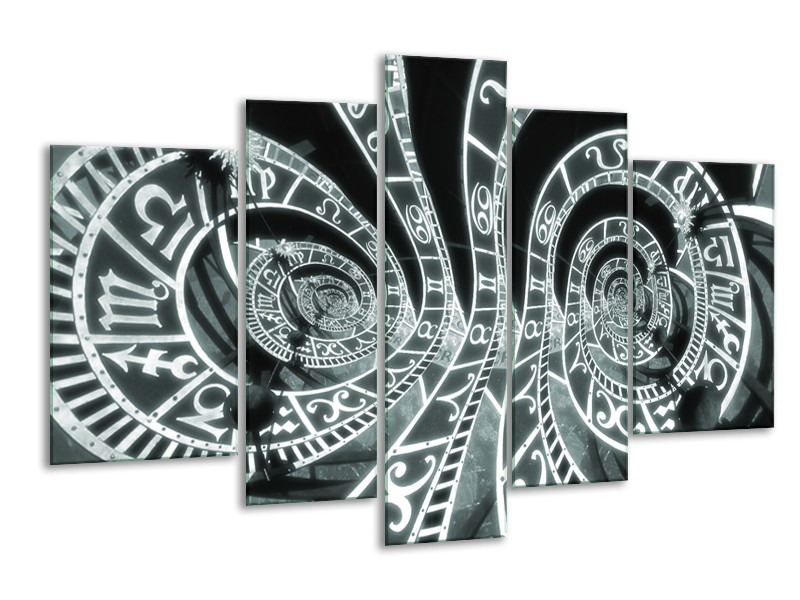 Canvas Schilderij Abstract | Grijs, Groen | 170x100cm 5Luik