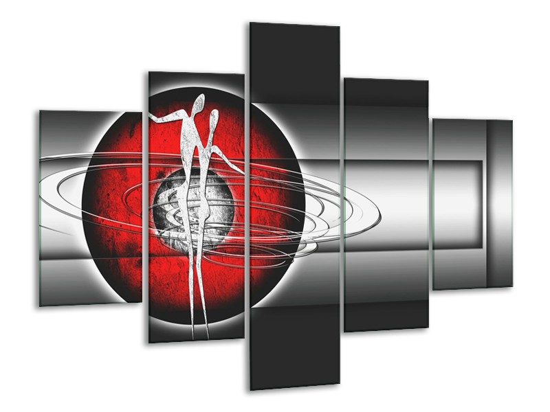 Canvas Schilderij Abstract, Modern | Zwart, Wit, Rood | 100x70cm 5Luik