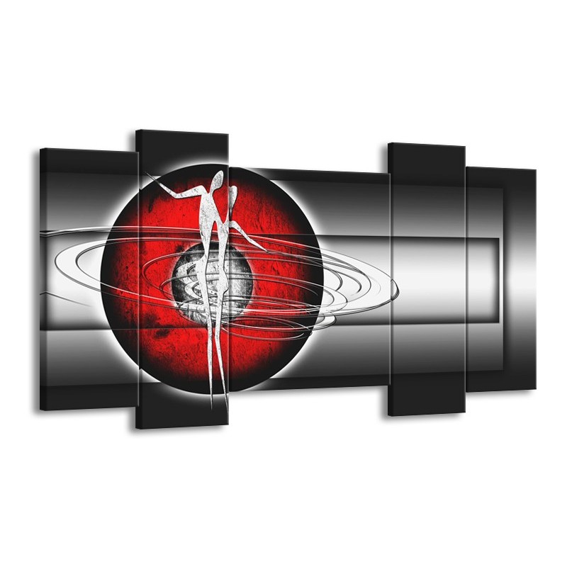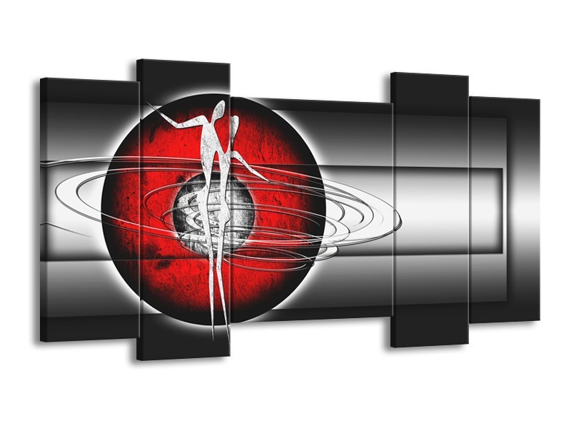 Canvas Schilderij Abstract, Modern | Zwart, Wit, Rood | 120x65cm 5Luik