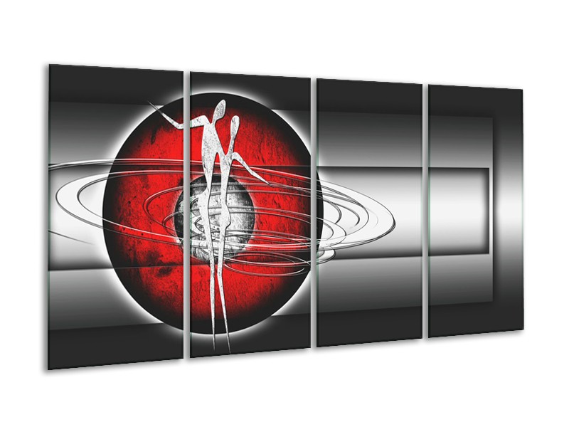 Canvas Schilderij Abstract, Modern | Zwart, Wit, Rood | 160x80cm 4Luik