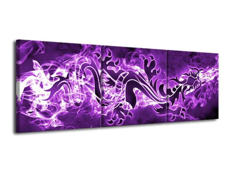 Canvas Schilderij Abstract | Paars, Wit | 120x40cm 3Luik