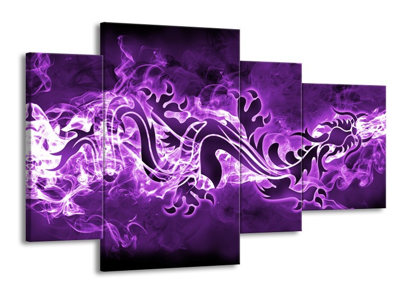 Canvas Schilderij Abstract | Paars, Wit | 120x75cm 4Luik