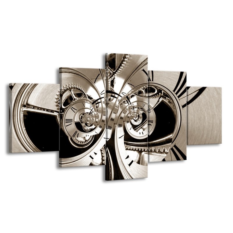 Canvas Schilderij Abstract | Sepia | 150x80cm 5Luik