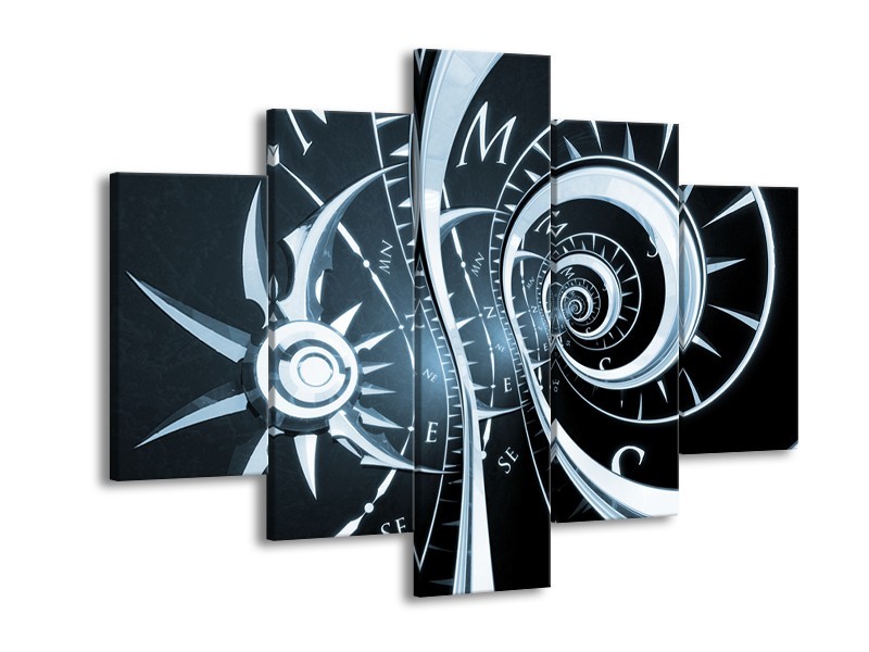 Canvas Schilderij Abstract | Zwart, Blauw | 150x105cm 5Luik