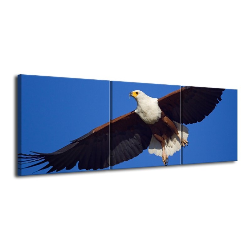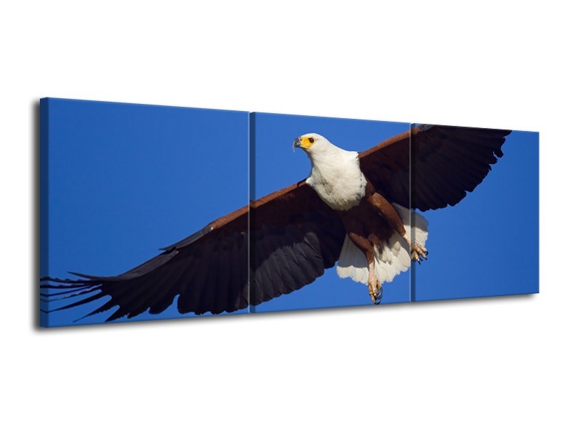 Canvas Schilderij Adelaar, Vogel | Blauw, Wit, Zwart | 120x40cm 3Luik