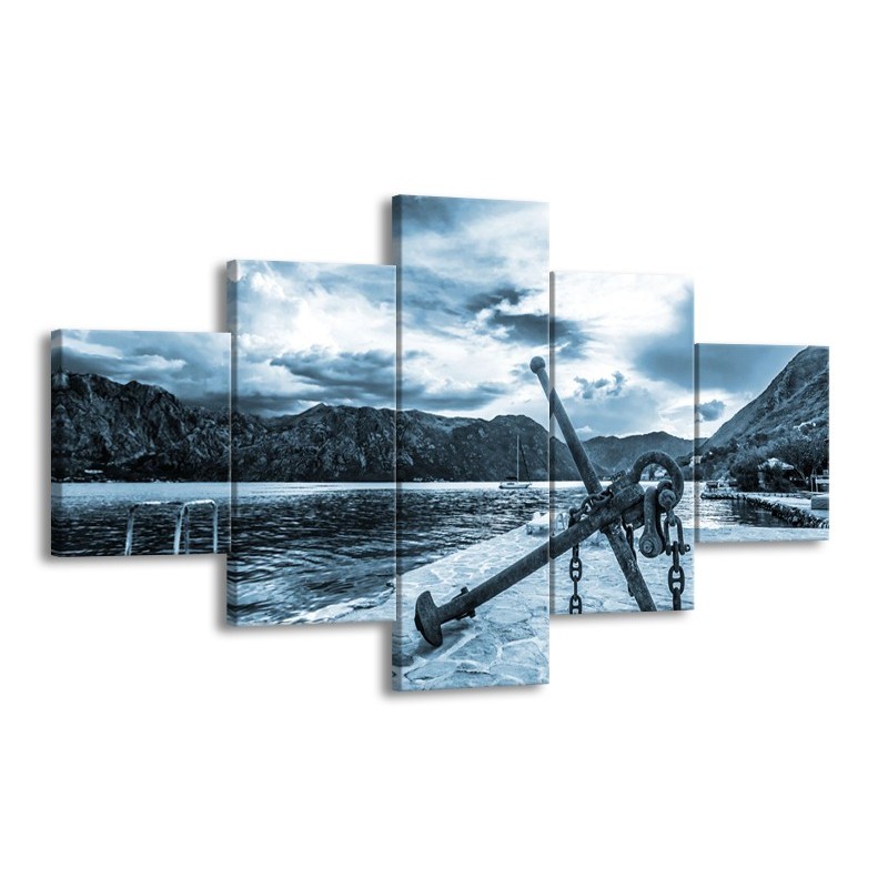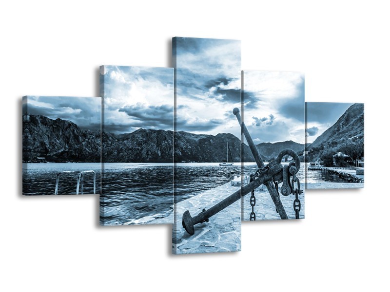 Canvas Schilderij Anker | Blauw, Grijs | 125x70cm 5Luik
