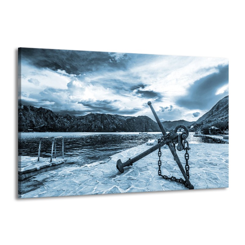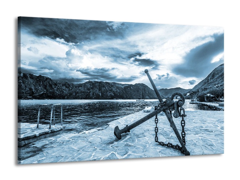 Canvas Schilderij Anker | Blauw, Grijs | 140x90cm 1Luik
