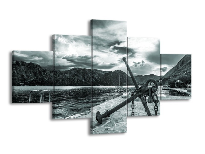 Canvas Schilderij Anker | Grijs, Groen | 125x70cm 5Luik
