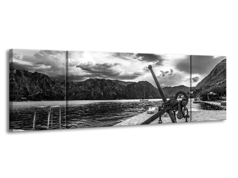 Canvas Schilderij Anker | Grijs, Zwart, Wit | 170x50cm 3Luik