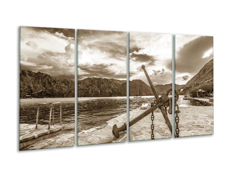 Canvas Schilderij Anker | Sepia | 160x80cm 4Luik