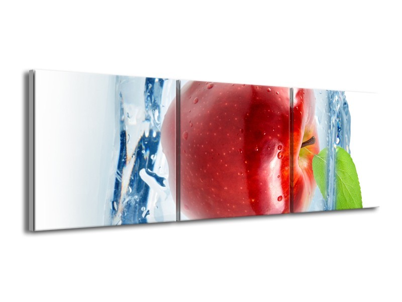 Canvas Schilderij Appel, Keuken | Rood, Blauw, Wit | 150x50cm 3Luik