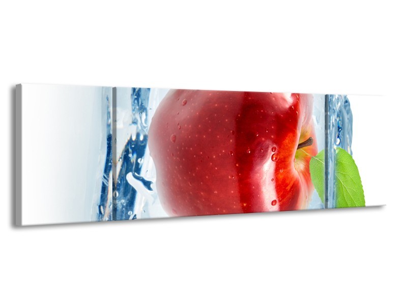 Canvas Schilderij Appel, Keuken | Rood, Blauw, Wit | 170x50cm 3Luik