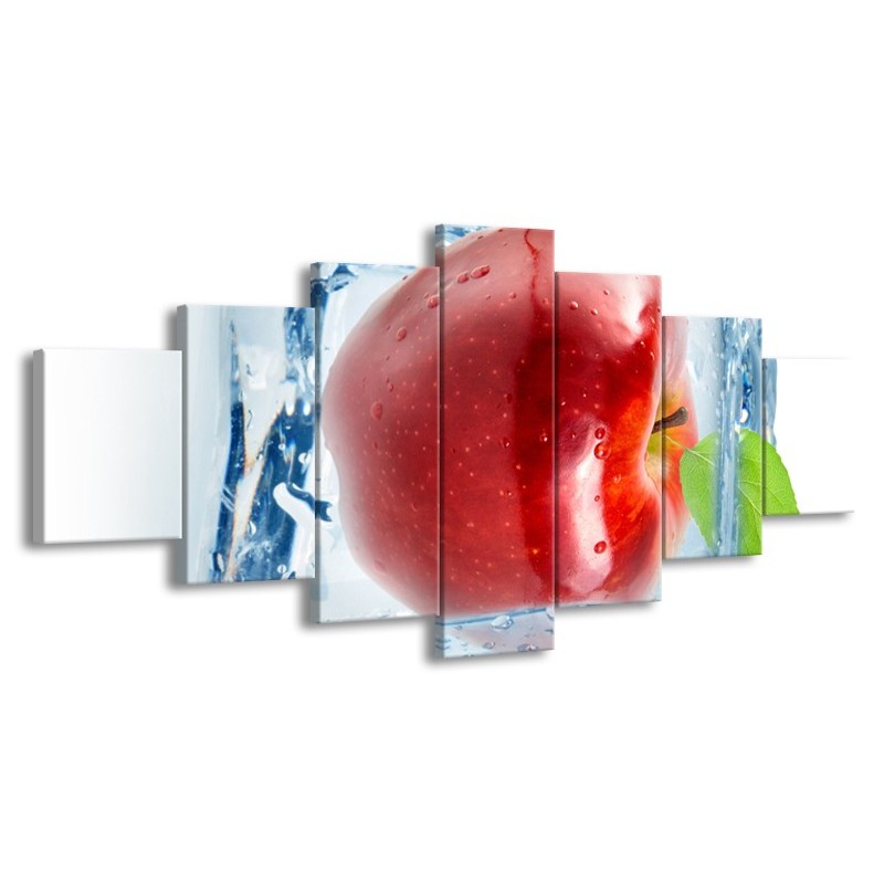 Canvas Schilderij Appel, Keuken | Rood, Blauw, Wit | 210x100cm 7Luik