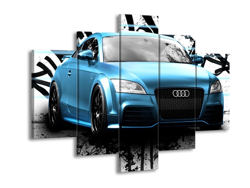Canvas Schilderij Audi, Auto | Blauw, Zwart, Grijs | 150x105cm 5Luik
