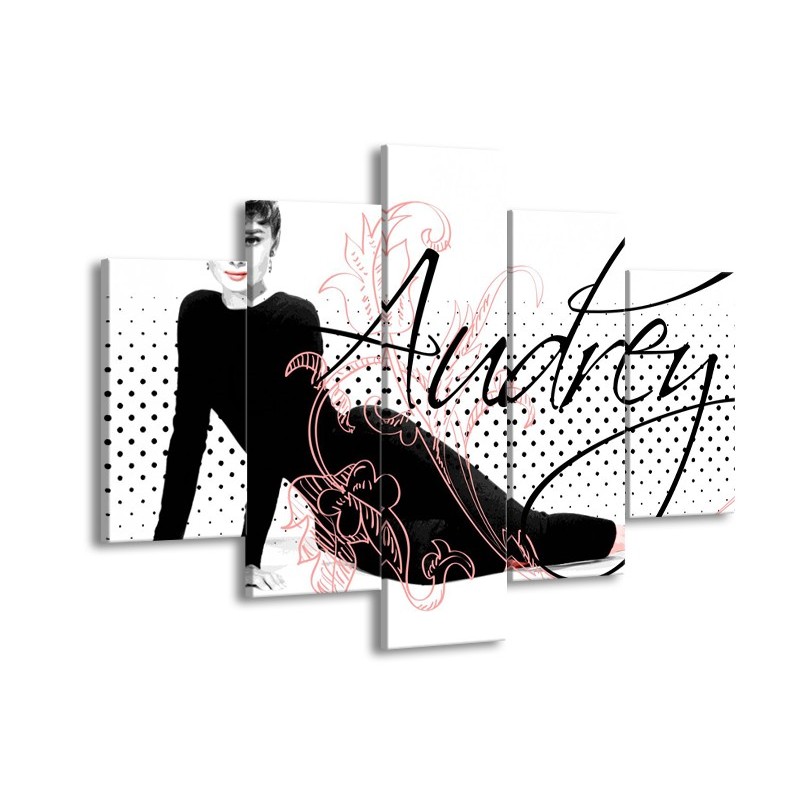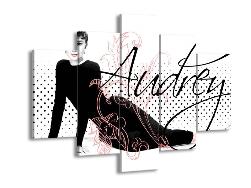 Canvas Schilderij Audrey, Popart | Zwart, Wit, Rood | 150x105cm 5Luik