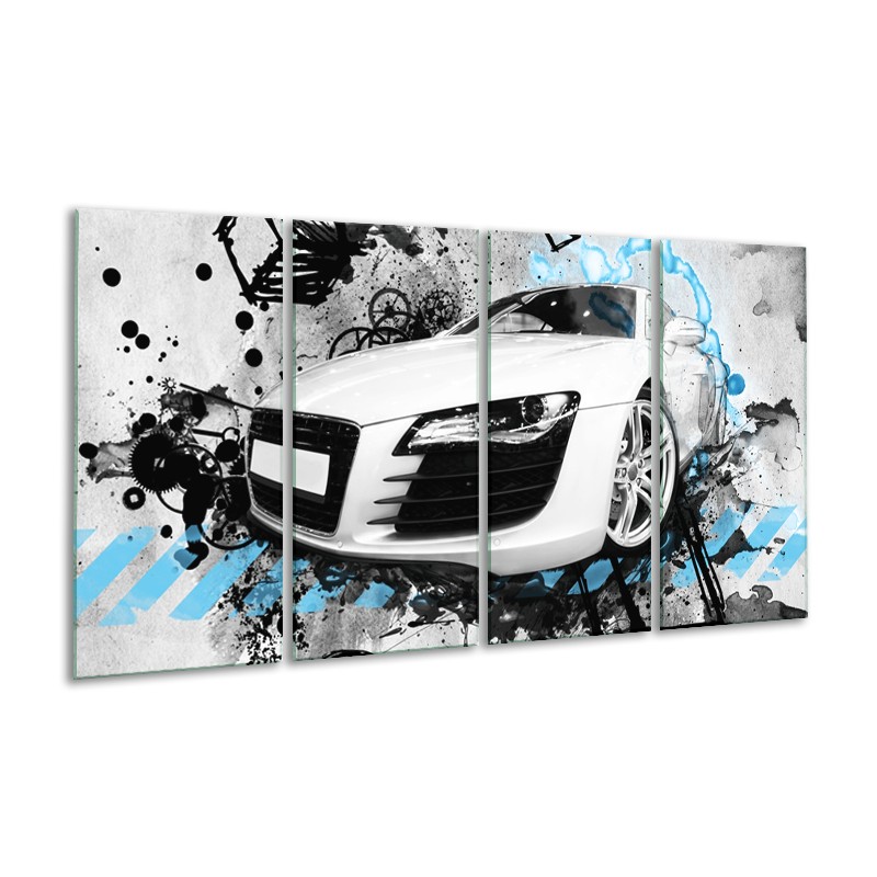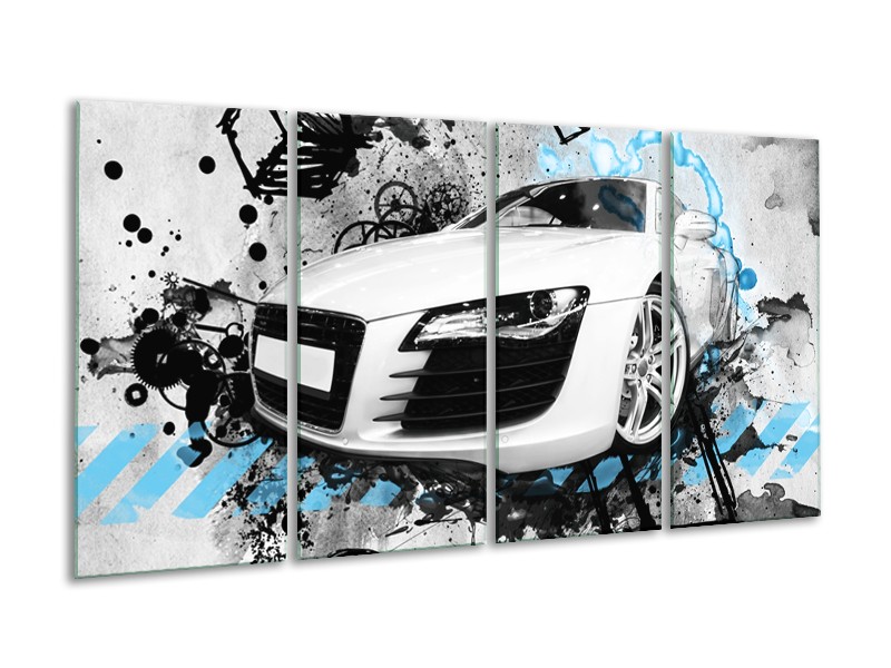 Canvas Schilderij Auto, Audi | Wit, Blauw, Zwart | 160x80cm 4Luik
