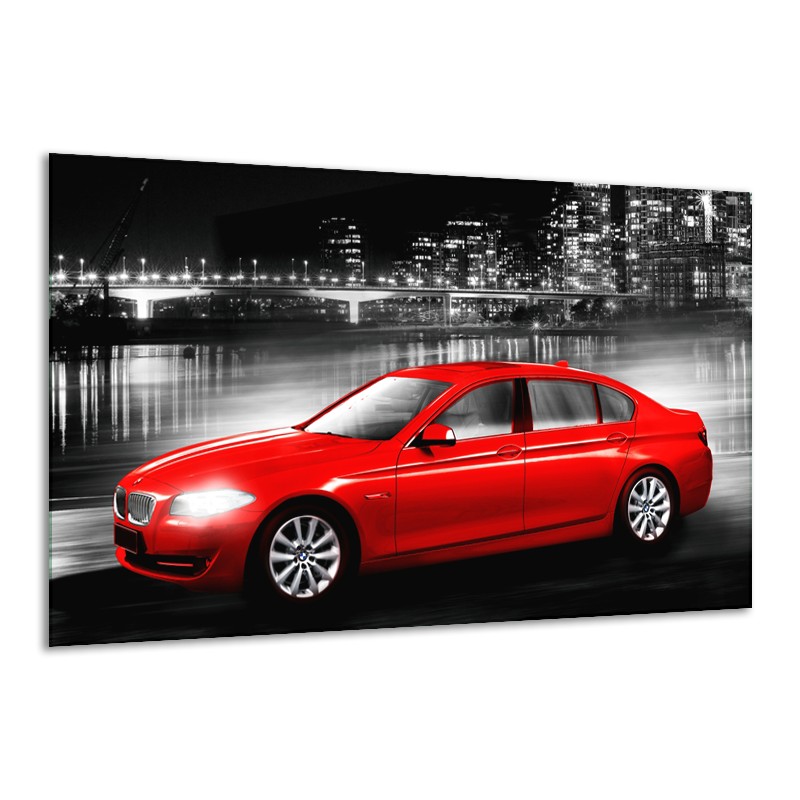 Canvas Schilderij Auto, BMW | Rood, Zwart, Grijs | 120x70cm 1Luik