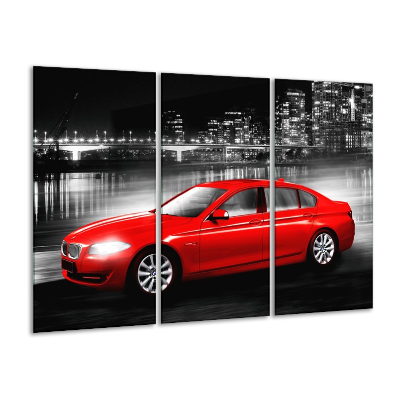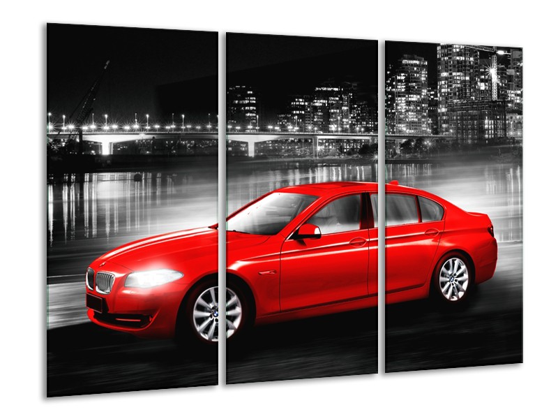Canvas Schilderij Auto, BMW | Rood, Zwart, Grijs | 120x80cm 3Luik