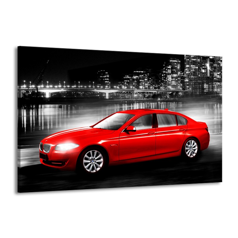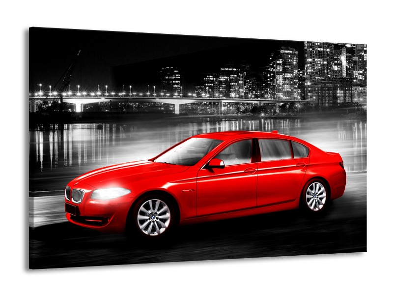 Canvas Schilderij Auto, BMW | Rood, Zwart, Grijs | 140x90cm 1Luik