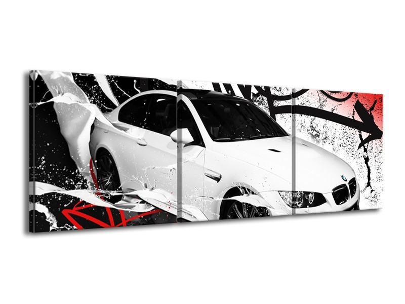 Canvas Schilderij Auto, BMW | Wit, Rood, Zwart | 150x50cm 3Luik