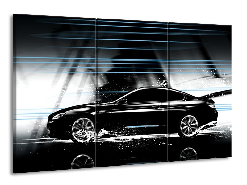 Canvas Schilderij Auto | Grijs, Zwart, Blauw | 165x100cm 3Luik