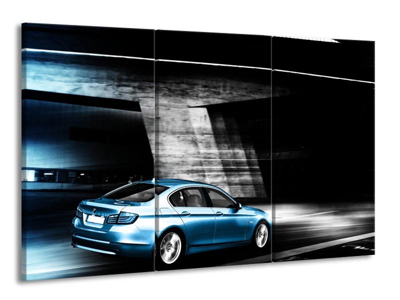 Canvas Schilderij Auto | Grijs, Zwart, Blauw | 165x100cm 3Luik