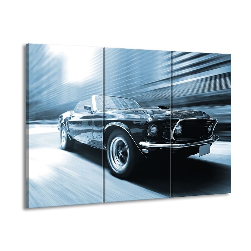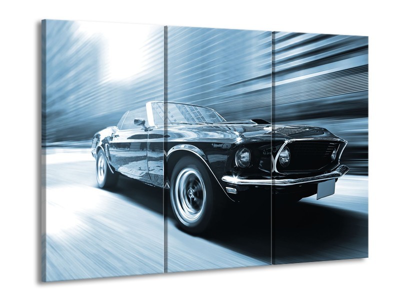 Canvas Schilderij Auto, Mustang | Blauw, Wit | 60x90cm 3Luik