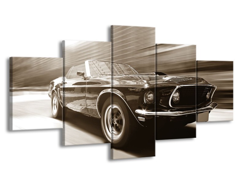 Canvas Schilderij Auto, Mustang | Sepia | 150x80cm 5Luik