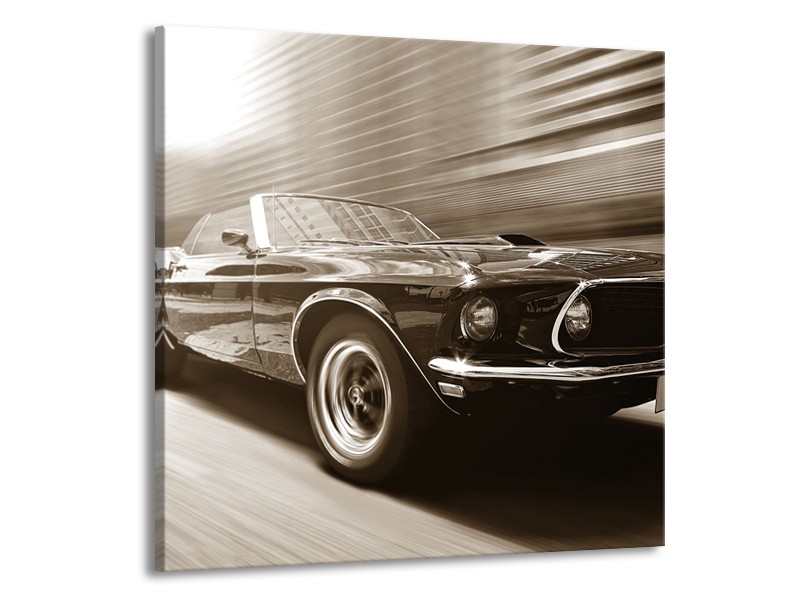 Canvas Schilderij Auto, Mustang | Sepia | 50x50cm 1Luik
