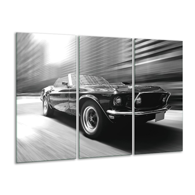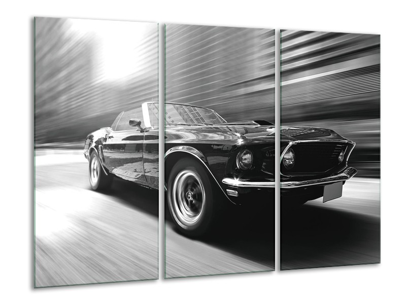 Canvas Schilderij Auto, Mustang | Zwart, Grijs | 120x80cm 3Luik