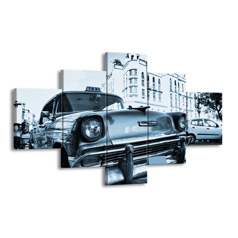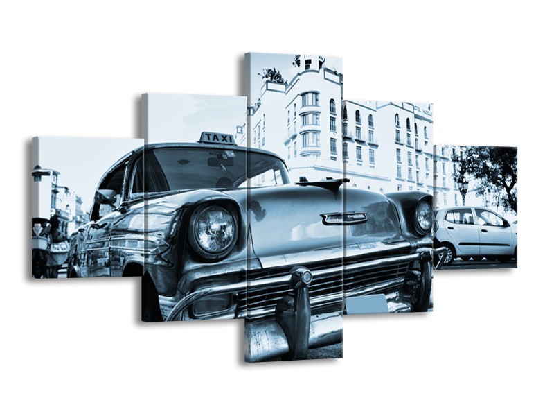 Canvas Schilderij Auto, Oldtimer | Blauw | 125x70cm 5Luik