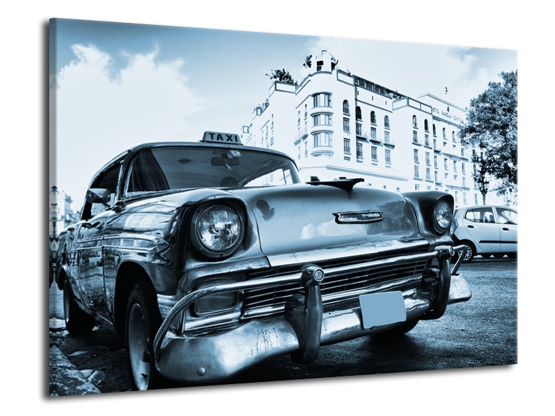 Canvas Schilderij Auto, Oldtimer | Blauw | 70x50cm 1Luik
