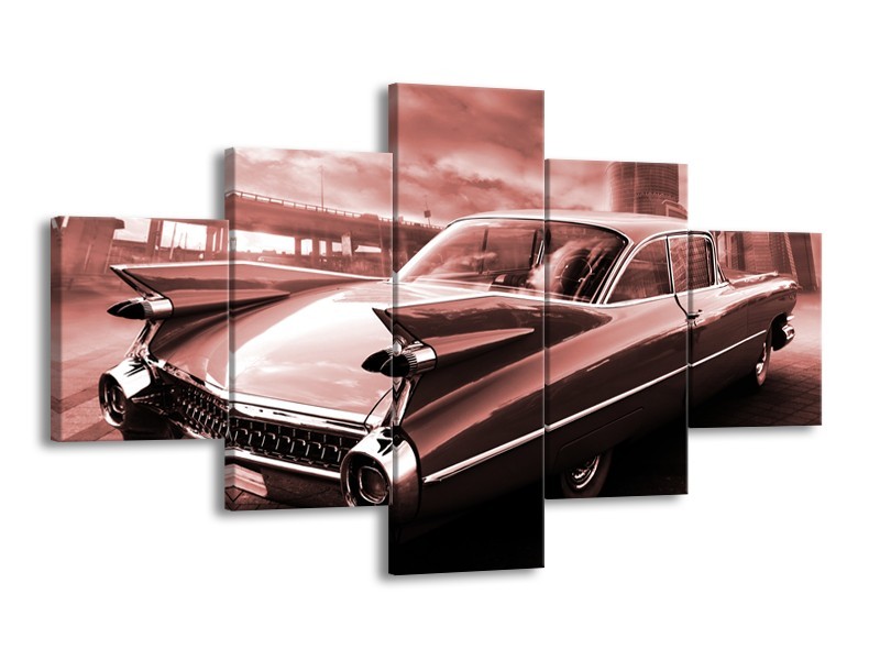 Canvas Schilderij Auto, Oldtimer | Bruin, Rood | 125x70cm 5Luik