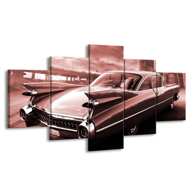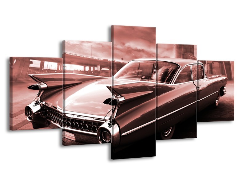 Canvas Schilderij Auto, Oldtimer | Bruin, Rood | 150x80cm 5Luik