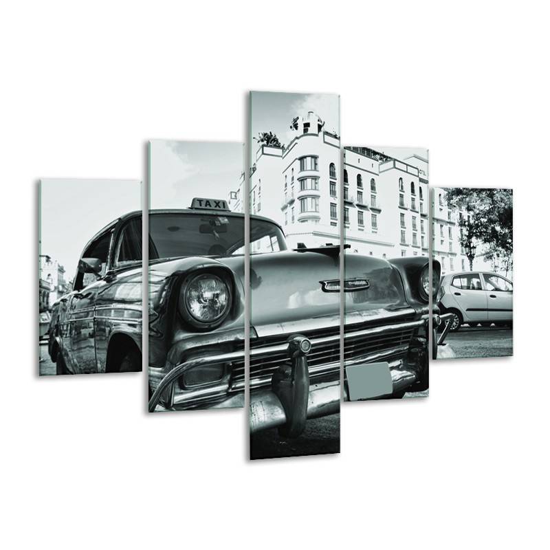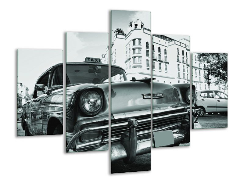Canvas Schilderij Auto, Oldtimer | Grijs, Groen, Wit | 100x70cm 5Luik