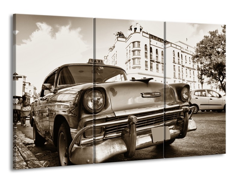 Canvas Schilderij Auto, Oldtimer | Sepia | 165x100cm 3Luik
