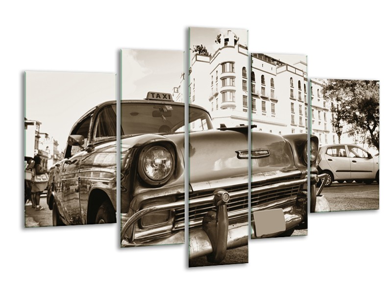 Canvas Schilderij Auto, Oldtimer | Sepia | 170x100cm 5Luik