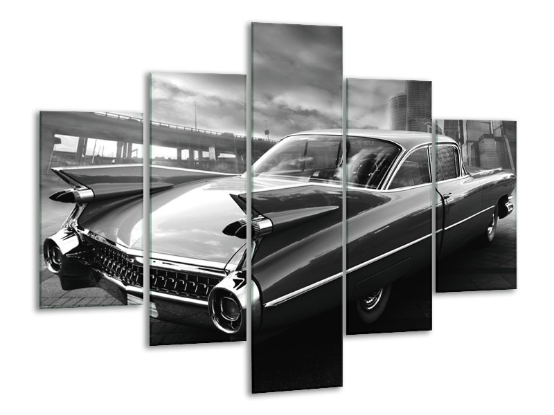 Canvas Schilderij Auto, Oldtimer | Zwart, Grijs | 100x70cm 5Luik