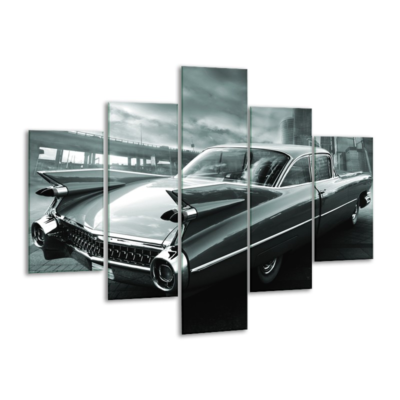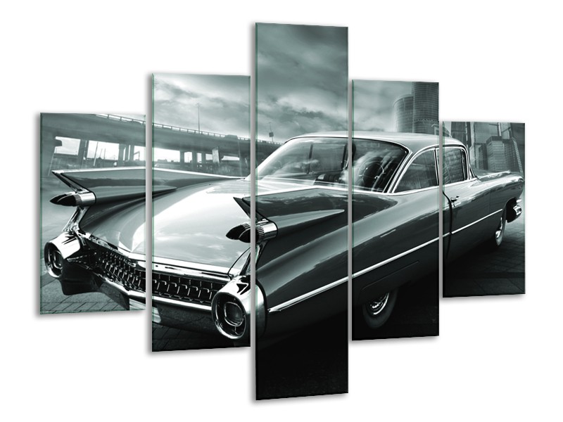 Canvas Schilderij Auto, Oldtimer | Zwart, Grijs, Groen | 100x70cm 5Luik