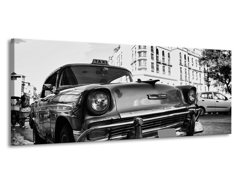 Canvas Schilderij Auto, Oldtimer | Zwart, Grijs, Wit | 145x58cm 1Luik