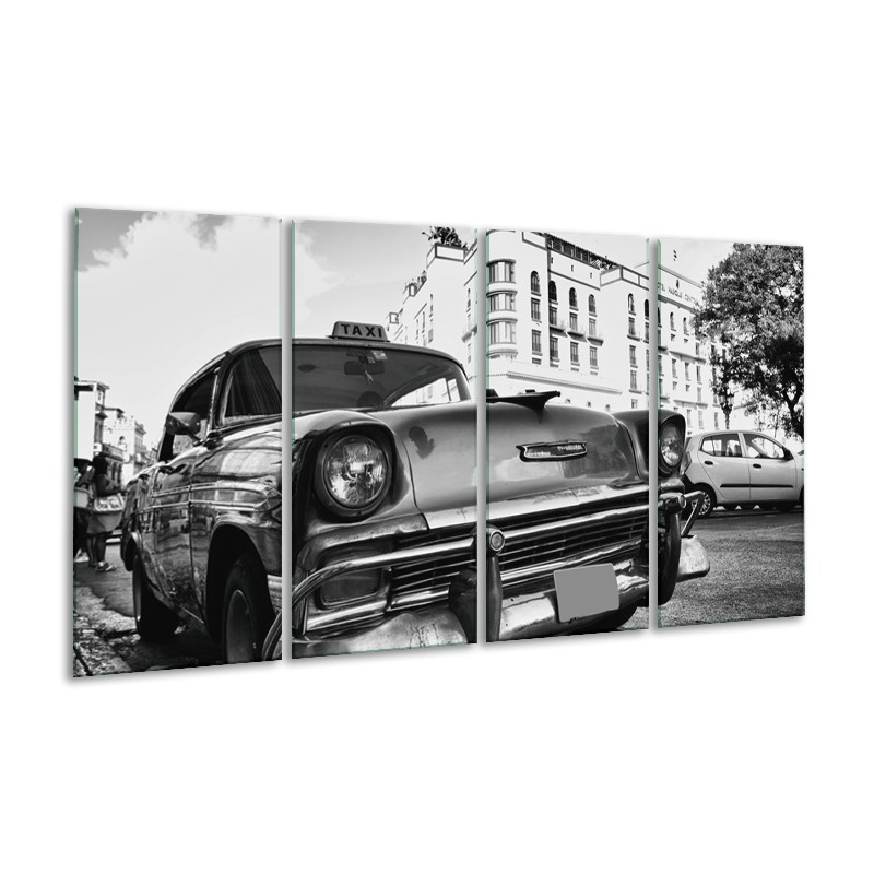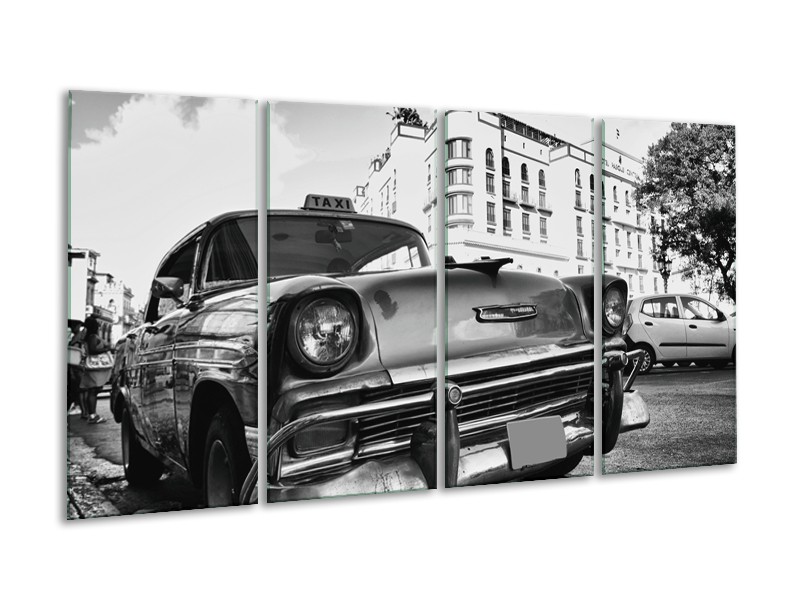 Canvas Schilderij Auto, Oldtimer | Zwart, Grijs, Wit | 160x80cm 4Luik