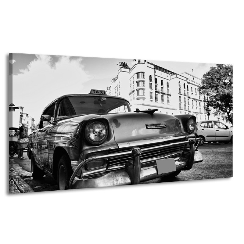 Canvas Schilderij Auto, Oldtimer | Zwart, Grijs, Wit | 170x90cm 1Luik