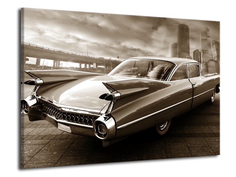 Canvas Schilderij Auto | Sepia | 70x50cm 1Luik