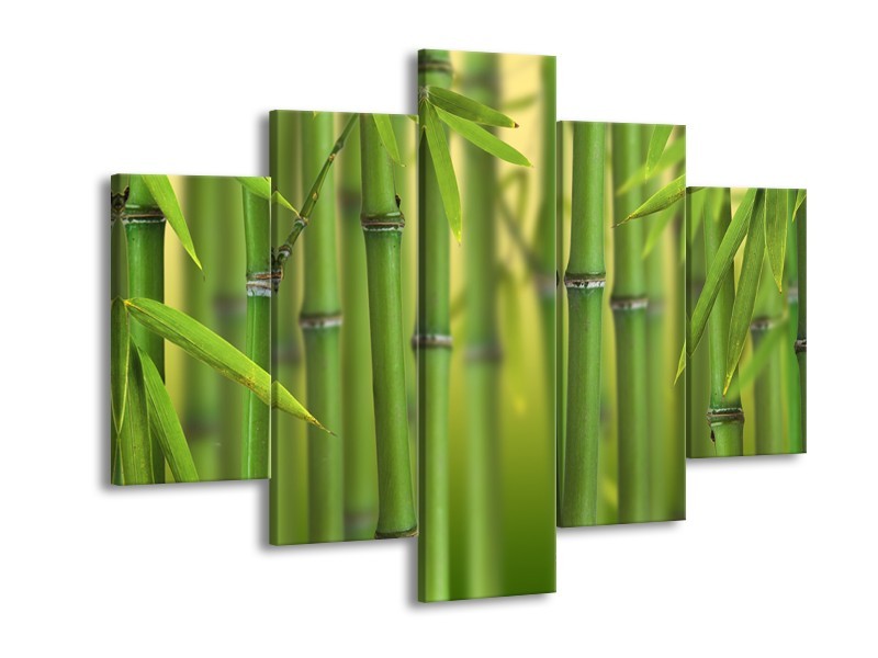 Canvas Schilderij Bamboe, Natuur | Groen, Geel | 150x105cm 5Luik