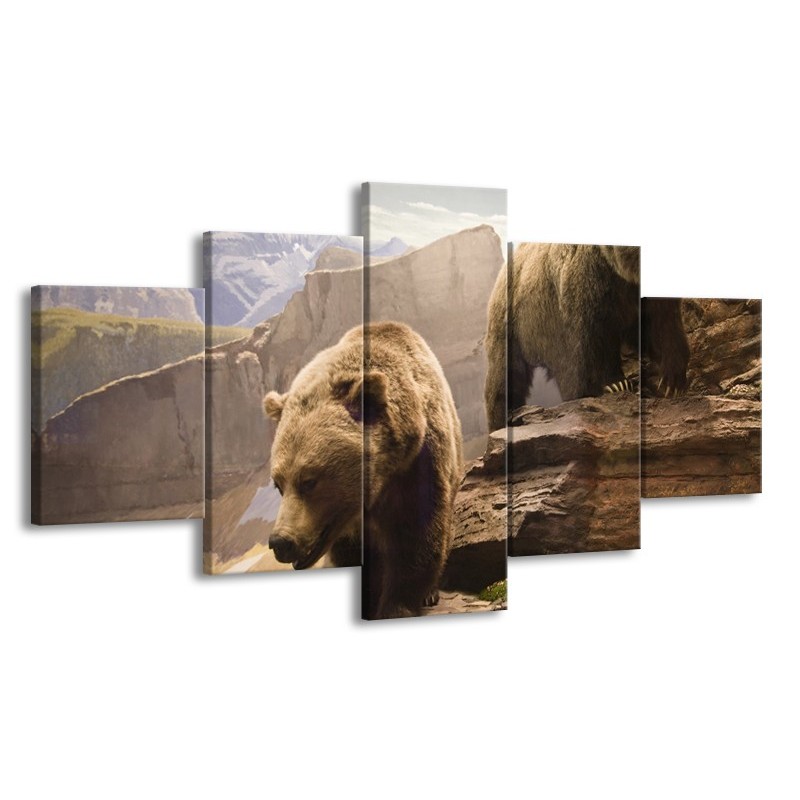 Canvas Schilderij Beer, Bergen | Bruin, Grijs | 150x80cm 5Luik